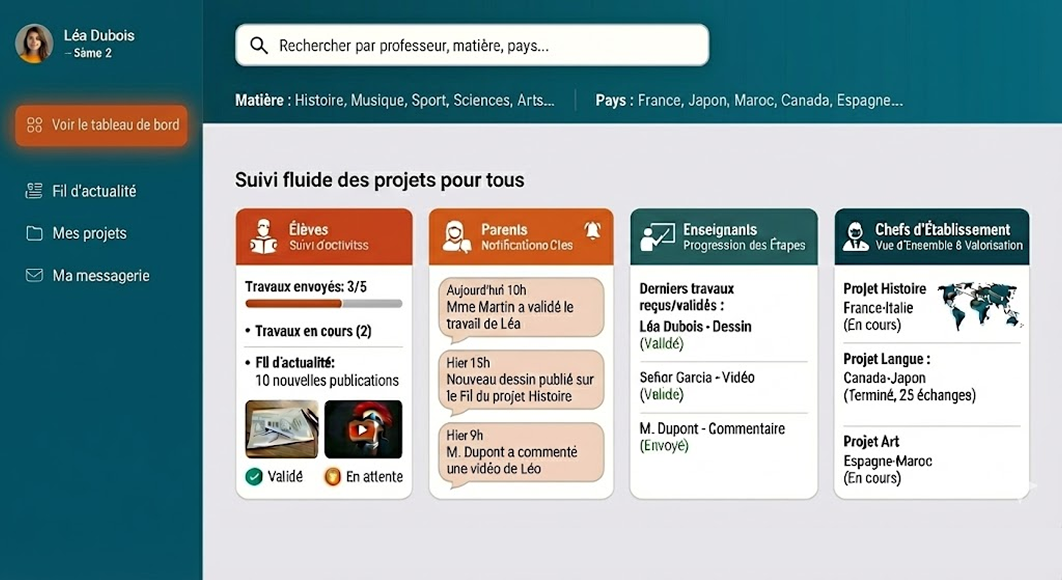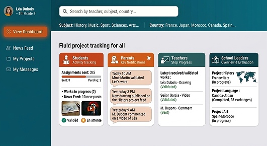 Une plateforme pensée pour rapprocher les classes du monde entier et donner vie à des projets collaboratifs interculturels.